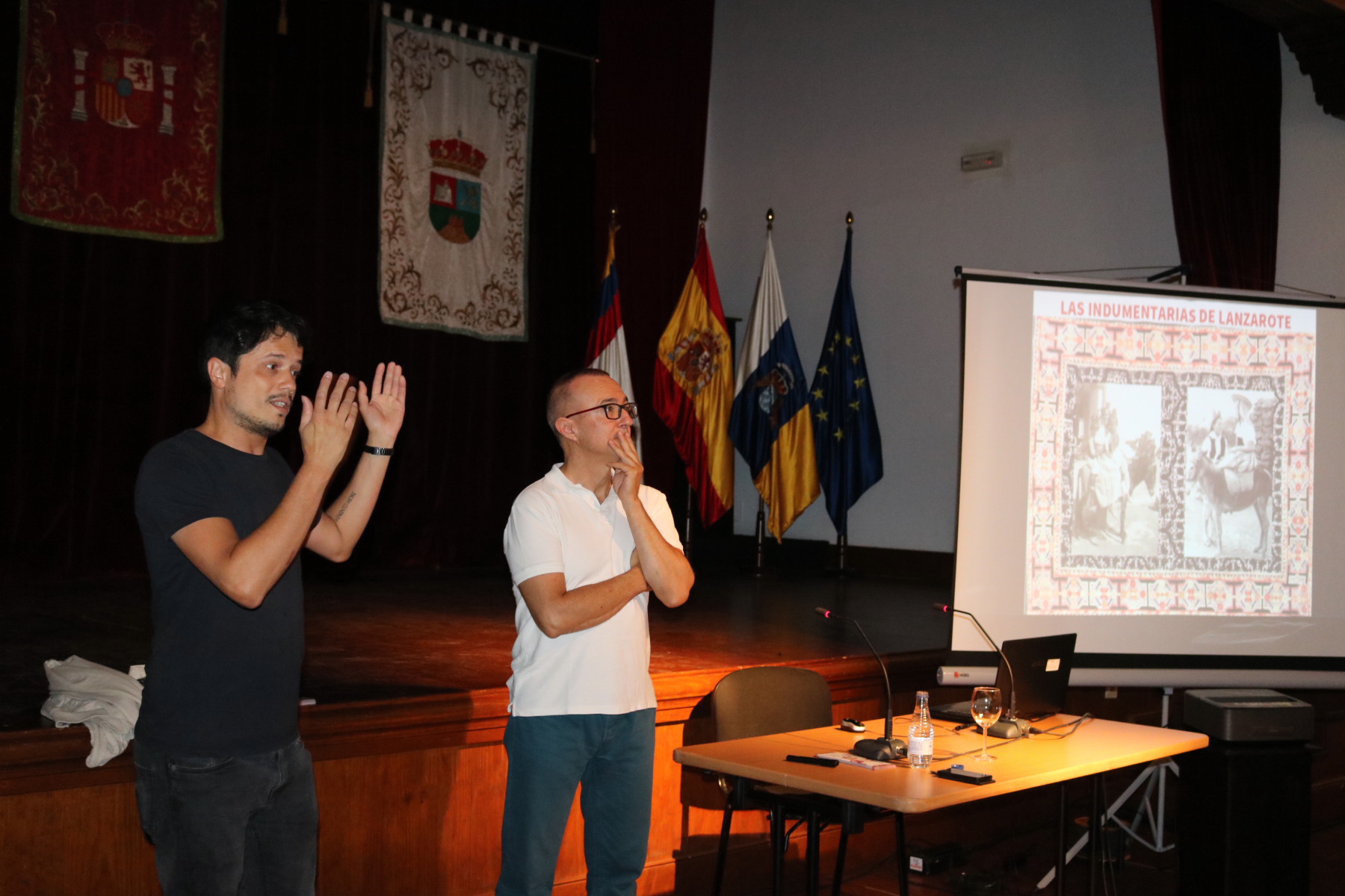 La conferencia, que recorrerá los siete municipios lanzaroteños y La Graciosa, contó con la asistencia del concejal de Cultura de Yaiza, Daniel Medina, y fue presentada por su homólogo en el Cabildo de Lanzarote, Óscar Pérez.