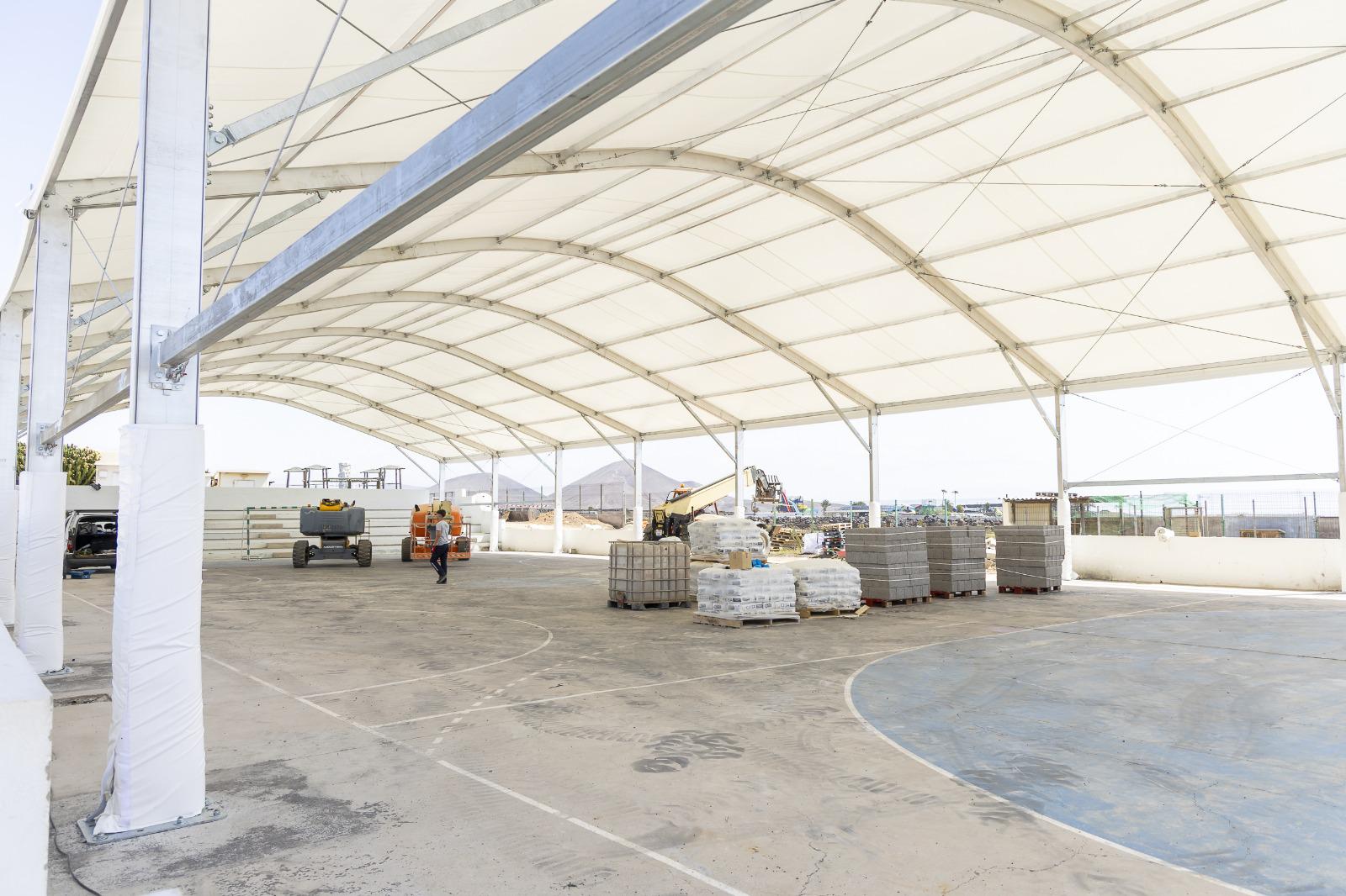 El Ayuntamiento instala estructuras para crear espacios con sombra en la cancha exterior y mejora el pavimento, entre otras medidas