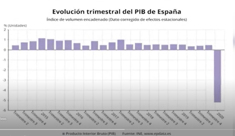Con el fuerte retroceso del PIB del primer trimestre, España se asoma a la recesión, ya que para que una economía entre en lo que se considera recesión técnica se requieren dos trimestres consecutivos de crecimiento negativo. En todo caso, se da por hecho una contracción del PIB en el segundo trimestre, mayor a la del primero, debido a que el periodo abril-junio se vio afectado por la paralización de numerosas actividades económicas como consecuencia de la declaración del estado de alarma. En los tres trimestres precedentes (segundo, tercero y cuarto trimestre de 2019), la economía española venía creciendo a tasas del 0,4%.
