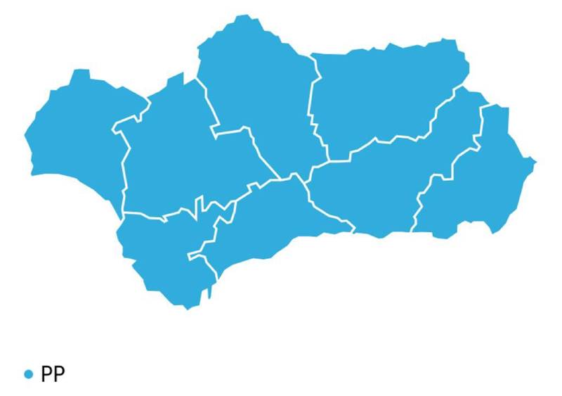 De este modo, el PP alcanza una histórica mayoría absoluta, con 58 escaños. Se trata del mejor resultado en Andalucía para los populares. Han quedado en todas las provincias quedan en cabeza. Vox mejora sus números, al pasar de 12 a 14 escaños, pero no será necesario para formar gobierno. Ciudadanos desaparece, se desploma de 21 a 0. El PSOE se queda en 30 escaños, cosechando así el peor resultado de su historia, con tres menos que los 33 que obtuvo Susana Díaz en 2018. Por Andalucía está en 5 y Adelante Andalucía, en 2.