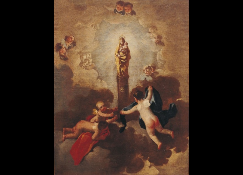 Desde el punto de vista técnico y cromático, a base de tonalidades vivas y luminosas, se puede relacionar esta obra con los cartones de temas de caza y pesca para los tapices destinados a decorar el comedor de los príncipes de Asturias en el Real Sitio de San Lorenzo de El Escorial en 1775, añade la firma. El tema de la Virgen del Pilar fue elegido por Goya en distintas ocasiones. Se conoce un dibujo a lápiz de una de las páginas del Cuaderno italiano (f.134r) y un pequeño lienzo, 56 x 42 cm, que pintó h. 1771-1775, conservado en el Museo de Zaragoza.