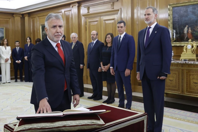 Los ministros que integrarán el Consejo de Ministros presidido por Pedro Sánchez han prometido su cargo este martes en el Salón de Audiencias del Palacio de la Zarzuela, para luego acudir a sus respectivos ministerios, donde asumieron sus nuevas competencias en el simbólico traspaso de carteras de manos de sus antecesores, tras haber sido publicados los nombramientos en el Boletín Oficial del Estado (BOE). Así, la titular de Política Territorial saliente, Isabel Rodríguez y el hasta ahora ministro de Presidencia, Relaciones con las Cortes y Memoria Democrática, Félix Bolaños, han traspasado sus carteras al nuevo ministro de Política Territorial y Memoria Democrática, Ángel Víctor Torres, tal y como publica Tiempo de Canarias.