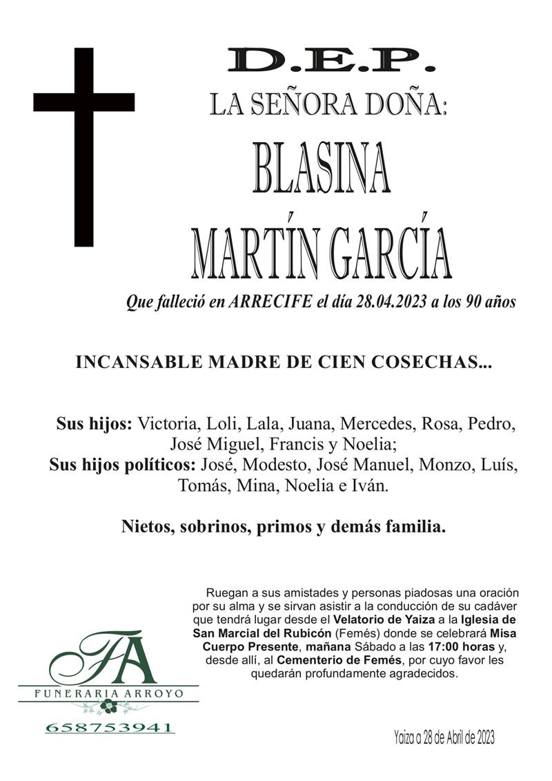 D.E.P. Doña Blasina Martín García