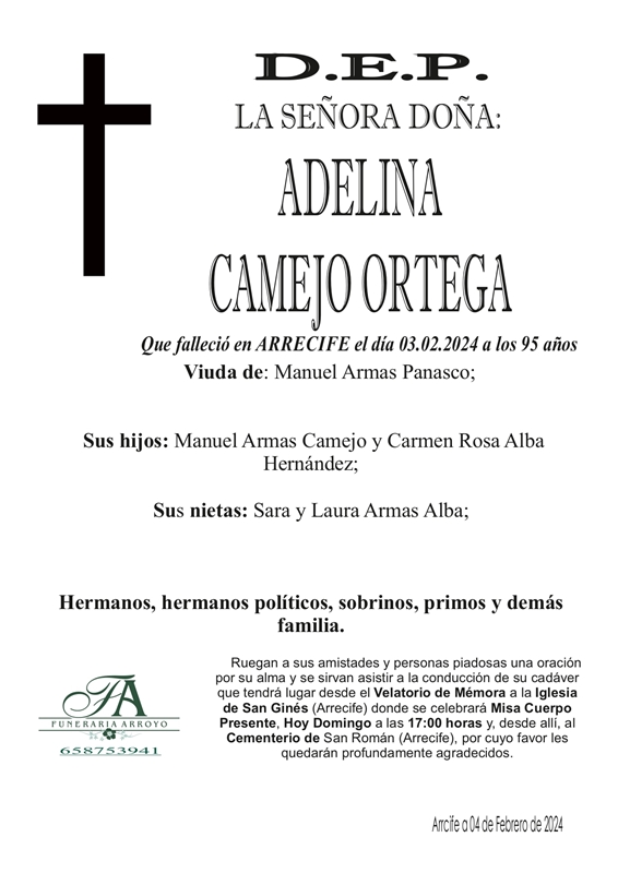 Que falleció en ARRECIFE el día 03.02.2024 a los 95 años