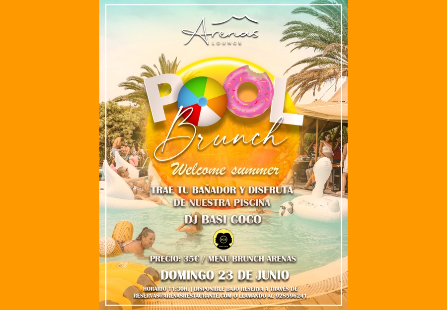 El verano ha llegado y Arenas Lounge lo celebra con su primer POOL BRUNCH del año, un evento extraordinario conocido por combinar lo mejor de su famoso brunch con el vibrante ambiente de su zona de piscina. El evento tendrá lugar en la mañana del 23 de junio, a partir de las 11:30 AM, en Arenas Lounge en Puerto del Carmen.