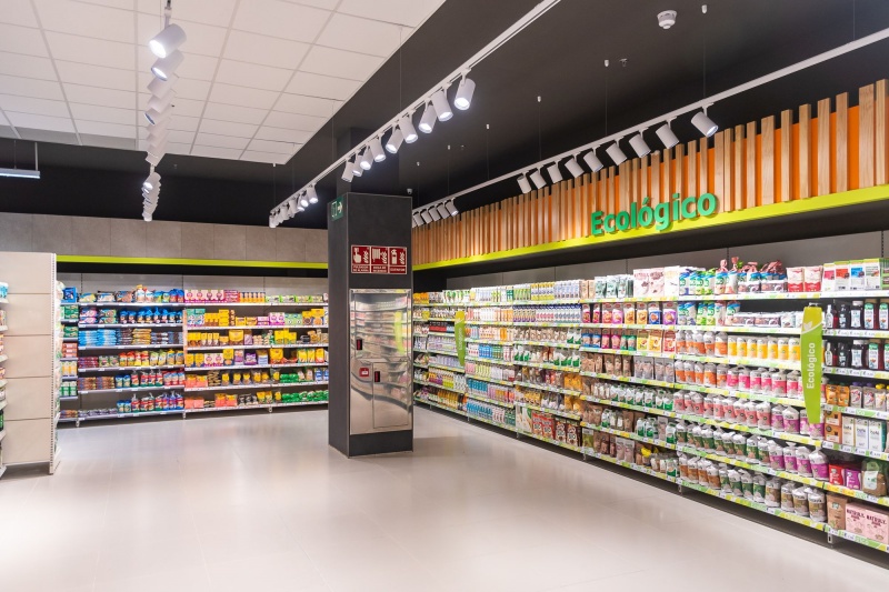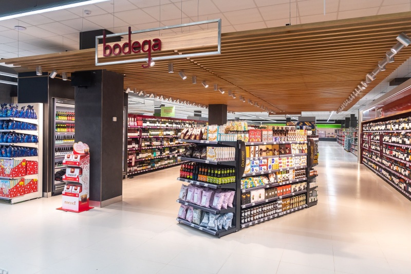 Cuenta con secciones como charcutería, carnicería, pescadería, frutería, panadería, ecológico, gourmet, bodega y perfumería asistida.