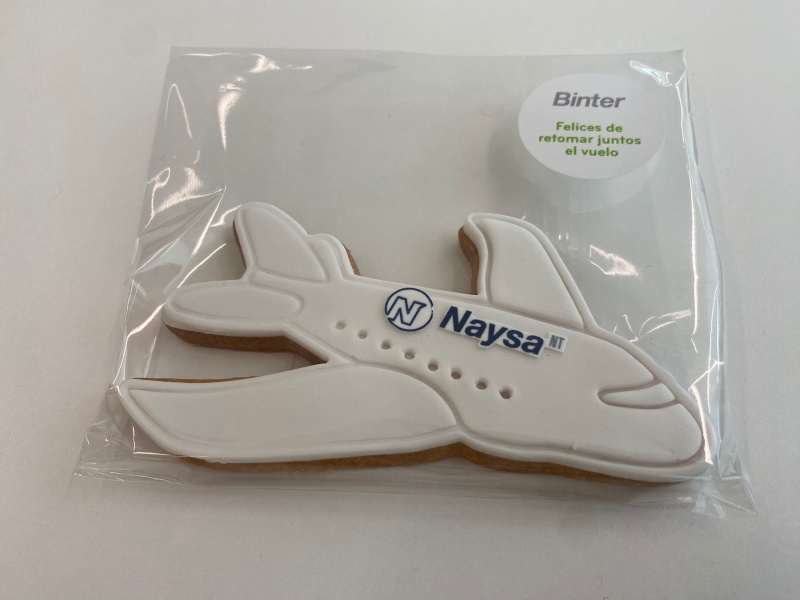 Con motivo del inicio de la actividad de esta nueva etapa de la empresa histórica del sistema Binter, se ha repartido a los pasajeros galletas con forma de avión