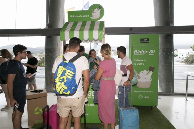 Binter ha repartido durante este martes helados con sabor de ambrosía Tirma entre los pasajeros presentes en las zonas de embarque de los aeropuertos de Gran Canaria y Tenerife Norte, para agradecerles la confianza depositada en la aerolínea a lo largo de sus 30 años de vuelo y refrescarles el verano.