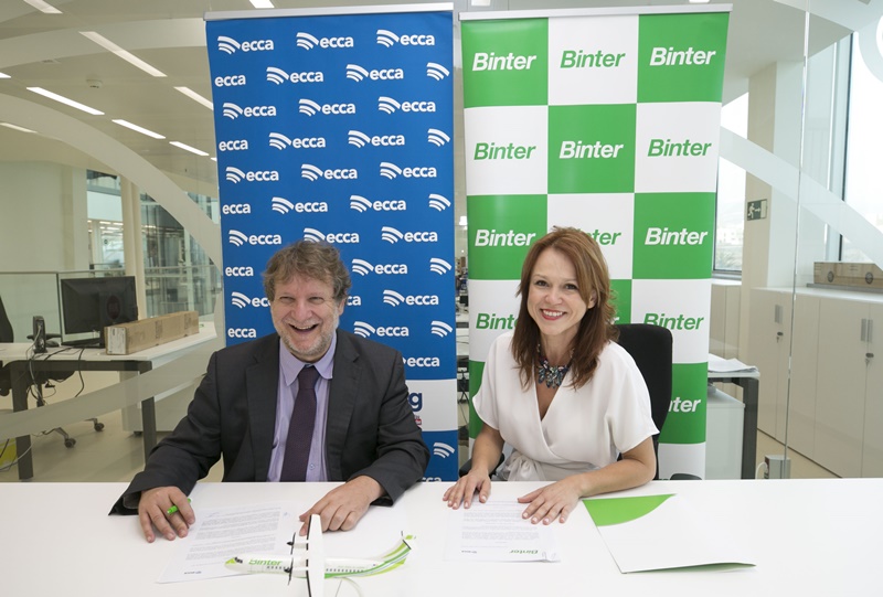 Binter ha renovado su convenio de colaboración con Radio ECCA por el que la aerolínea canaria se compromete a cooperar en sus actividades educativas en África. En el acto de la firma del acuerdo intervinieron Noelia Curbelo Caro, directora de Relaciones Institucionales y Comunicación de Binter, y Lucas López SJ, director general de Radio ECCA Fundación Canaria.