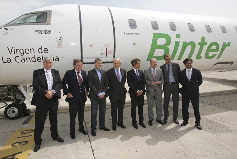 Durante el acto se mostró el avión de reacción Bombardier CRJ900, con capacidad para 90 personas, que la compañía Binter utiliza para cubrir las rutas internacionales y que, a partir de esta semana, llevará impreso en su fuselaje el logo de la marca Canary islands European Business Hub in Africa.