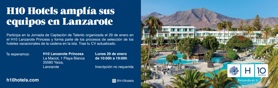 ¿Buscas empleo en las Islas Canarias? Participa en las Jornadas de Captación de Talento de H10 Hotels, que tendrán lugar los próximos 29 y 30 de enero en Lanzarote y Fuerteventura, respectivamente.