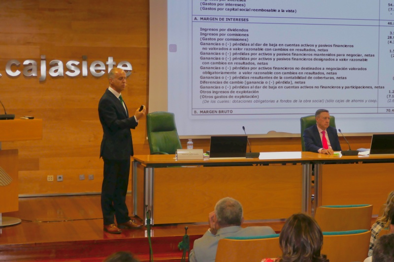 Desde el punto de vista económico, el director general Manuel del Castillo hizo hincapié en que la mayor vinculación de socios y clientes con la entidad es una realidad, con un aumento del número de productos contratados gracias a una de las señas de identidad de Cajasiete, la banca de proximidad. La base de clientes superó los 280 mil de los que más de 56 mil son socios, es decir, uno de cada 5 clientes son socios de la entidad lo que consolida el modelo de negocio basado en el cooperativismo. En este sentido, también apuntó, que la entidad aumentó su cuota de mercado, ampliando tanto su crédito a la clientela como los depósitos a la misma, que a cierre del ejercicio alcanzaron los 1.942M (+4,4%) y los 2.942M (+7,3%) respectivamente.