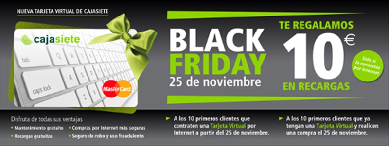 Cajasiete se suma al Black Friday de este año con importantes novedades en su Tarjeta Virtual como medio de pago que permite compras seguras por Internet y sin costes.