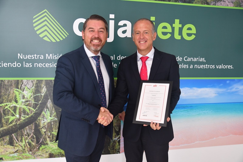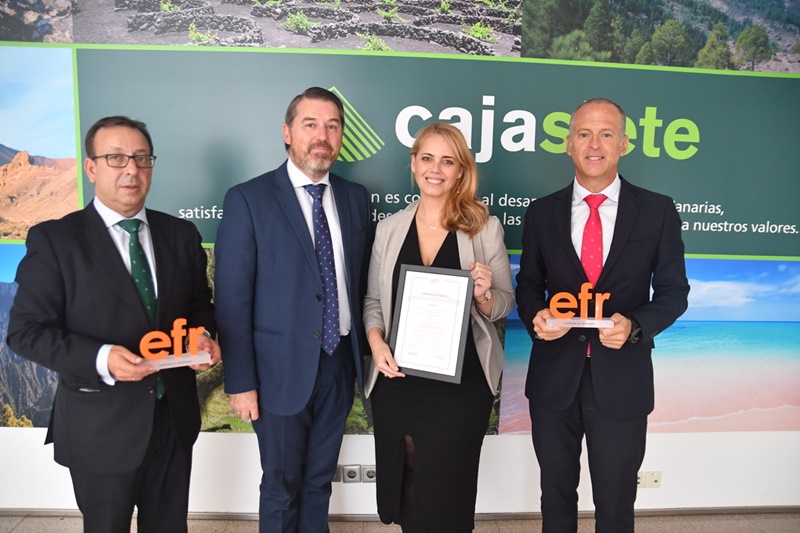 Cajasiete ha obtenido la certificación EFR (empresa familiarmente responsable) que promueve la conciliación y la igualdad y reconoce su compromiso con el bienestar de las personas que trabajan en la entidad. La entidad refuerza su apuesta por las personas que forman parte de su organización, de acuerdo con su propósito y valores corporativos.