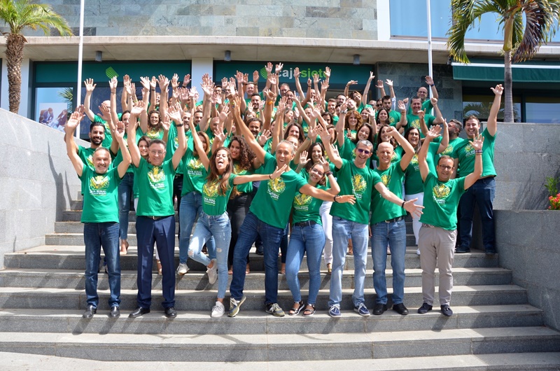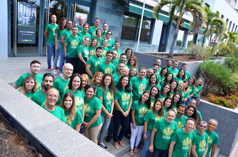 Y para llegar a muchos más niños y regalar mucha más ilusión, hoy 5 de septiembre se ha celebrado el ya tradicional Día de la Camiseta del Grupo Caja Rural, en el que los empleados de Cajasiete y de todo el Grupo Caja Rural cambian sus trajes por camisetas verdes llenas de esperanza, el 10% de cada póliza vendida en este día se destinará proyectos sociales de Cruz Roja demostrando de nuevo el carácter solidario que identifica a nuestros patrocinadores.