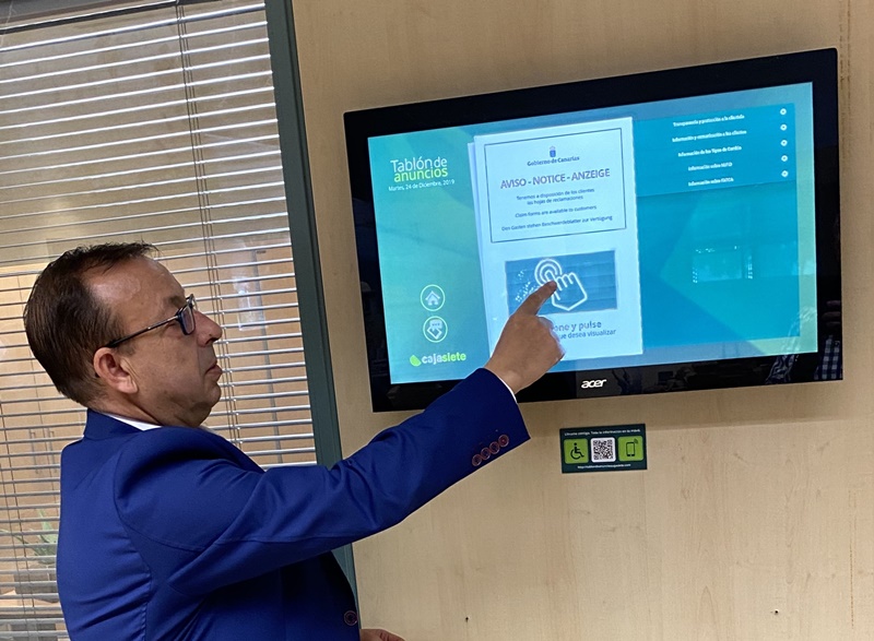 Este vanguardista avance tecnológico permitirá, a los clientes de Cajasiete que acuden a las oficinas de la entidad, acceder de una manera cómoda, sencilla e interactiva a toda la información que antiguamente figuraba en forma de papel en los clásicos tablones de anuncios.