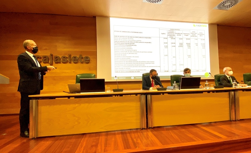 Cajasiete ha celebrado en la mañana de hoy su Asamblea General Ordinaria en la que los socios aprobaron por unanimidad todos los puntos del orden del día, entre los que se encuentran las Cuentas Anuales del Ejercicio 2020, el Informe de Gestión, el estado de información no financiera, el Informe de Auditoría y la Propuesta de aplicación del excedente disponible del citado ejercicio.