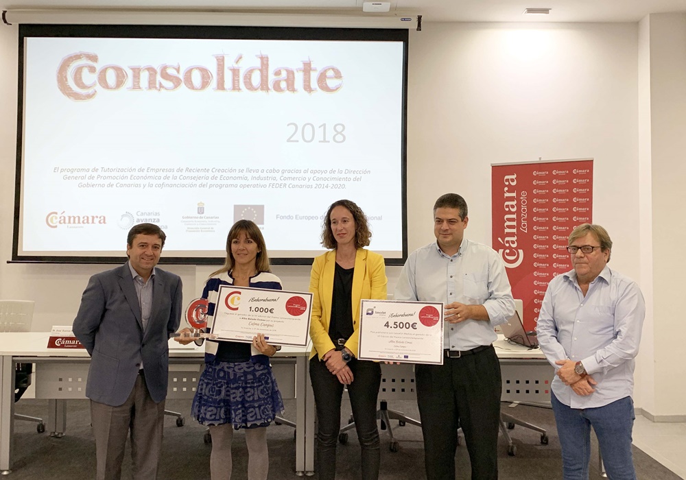 La directora general de la Dirección General de Promoción Económica del Gobierno de Canarias, Cristina Hernández Carnicer, ha entregado el Premio Lanzarotemprende a Calma Campus, proyecto ganador de la edición 2018, durante la clausura del “Programa de Tutorización de Empresas de reciente creación, Consolídate”. En el acto, se han presentado también los informes a las diez empresas participantes, que consisten en un plan de acción y una hoja de ruta, elaborada individualmente entre las empresas y los consultores durante el proceso de mentoría. El informe recoge las fortalezas y los puntos débiles de cada proyecto, así como las acciones estratégicas a realizar, que les servirán para consolidar sus empresas.