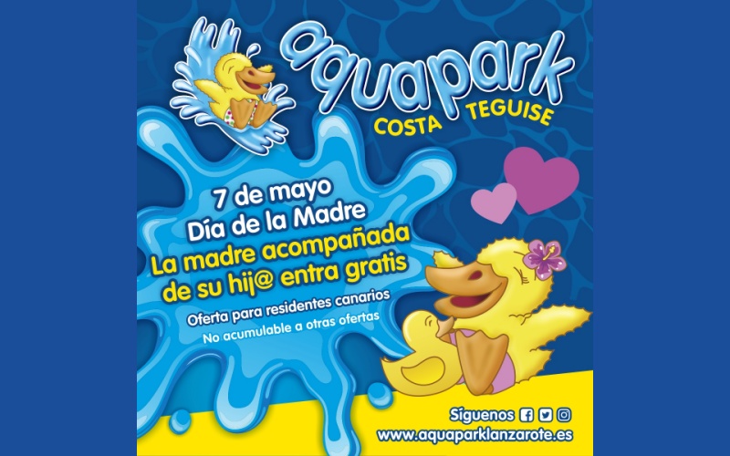 Aquapark Costa Teguise ha lanzado una oferta muy especial para disfrutar del Día de la Madre y por eso, el próximo domingo 7 de mayo, todas las madres que acudan a las instalaciones acompañadas de sus hijos, entrarán de manera gratuita.