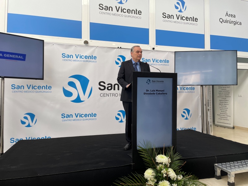 El director gerente de la clínica San Vicente el Dr. Diosdado Caballero ha agradecido los 20 años de trayectoria de la clínica a todos y cada uno de los trabajadores que han pasado por ella, a los especialistas médicos, a los enfermeros, a los sanitarios, y a todo el personal que le ha ayudado llegar hasta esta inauguración 20 años después.