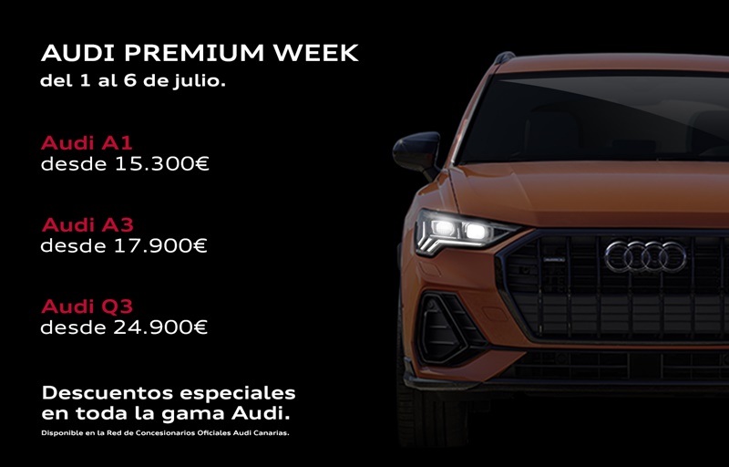 Regresa un año más una nueva edición de Audi Premium Week, donde solo durante una única semana, los clientes canarios tendrán la oportunidad de encontrar el Audi que desean a un precio inmejorable. Toda la gama de modelos en stock de la firma de los cuatro aros, estará expuesta en la red de concesionarios oficiales de la marca en Canarias con increíbles descuentos, nunca antes vistos.