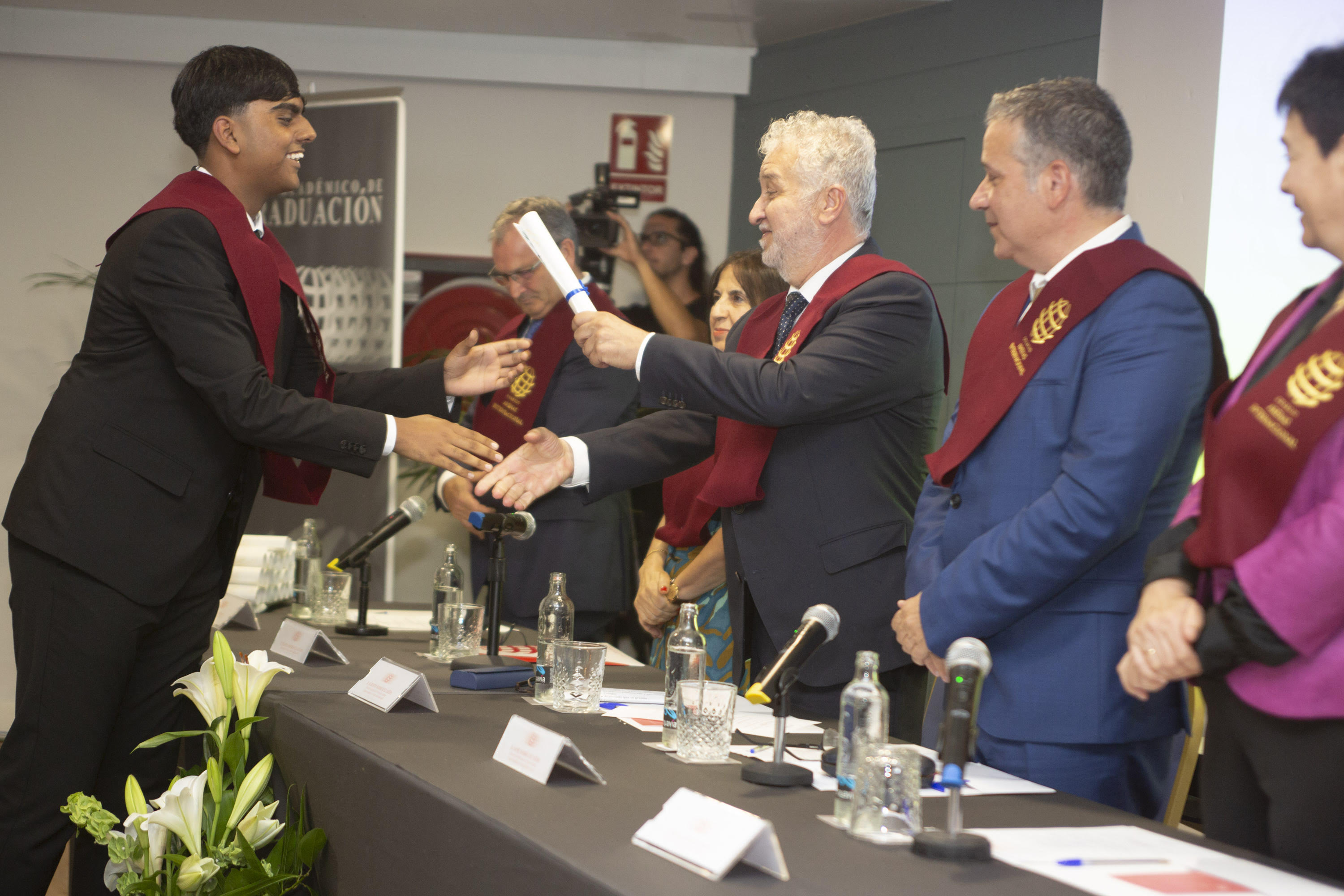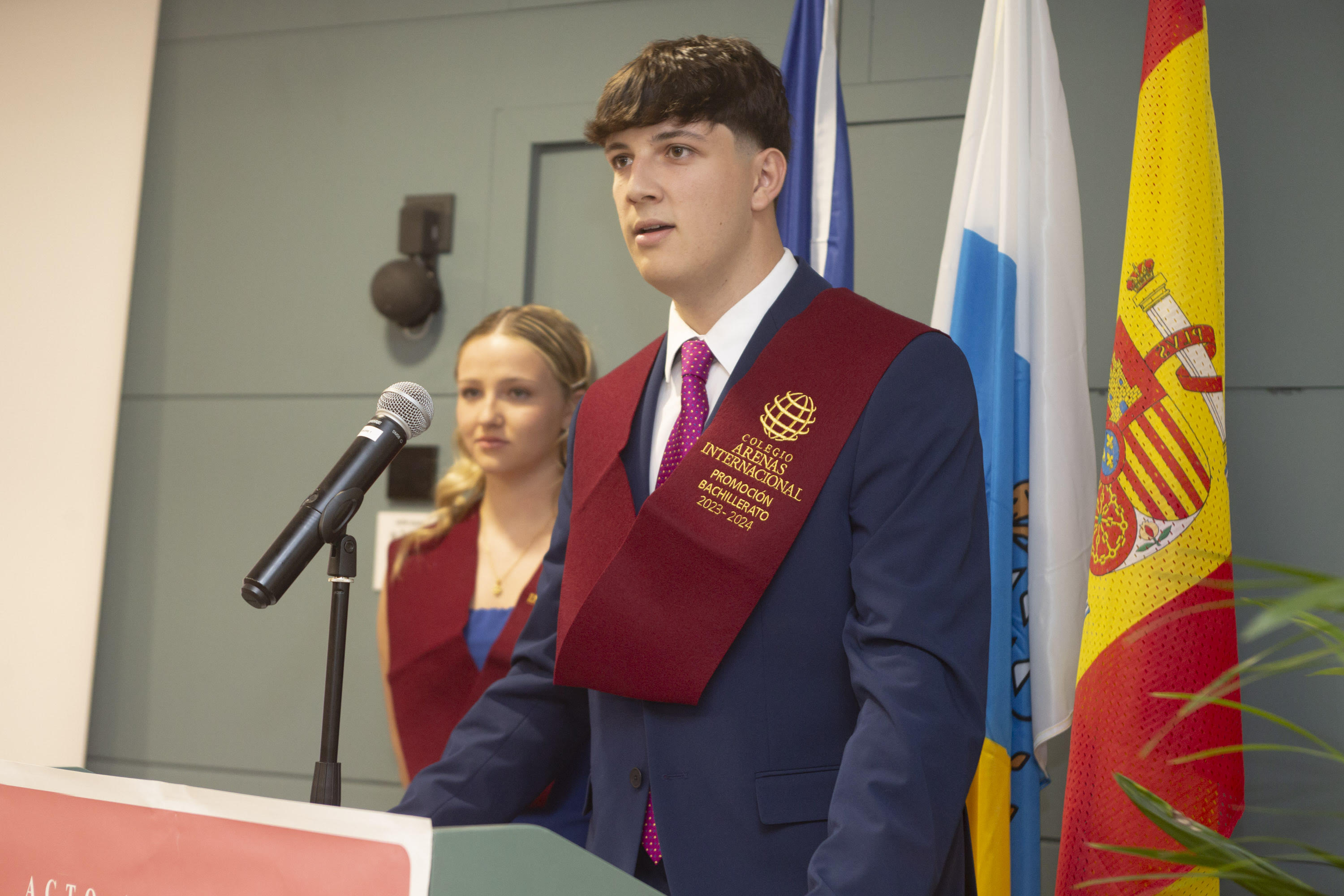 El coordinador del Programa del Diploma de Bachillerato Internacional y subdirector del Colegio Arenas Internacional ejerció de Maestro de Ceremonias. En la mesa presidencial, Alberto Rodríguez, director general del Colegio Arenas, Arenas Atlántico y Arenas Internacional; y Jaime Rodríguez, Director Gerente, flanqueados por la Directora del Colegio Arenas Internacional, Delfina Rodríguez, y de la Directora del Colegio Arenas Atlántico Pino que ejerció como Madrina de los orlados.