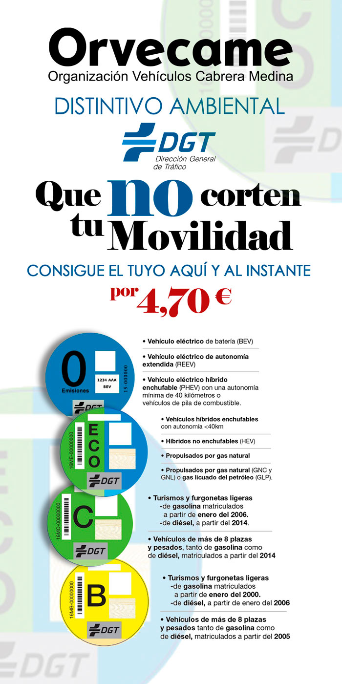 Orvecame ya cuenta con los distintivos ambientales de la DGT, ahora puedes conseguir el tuyo al instante por sólo 4,70 €