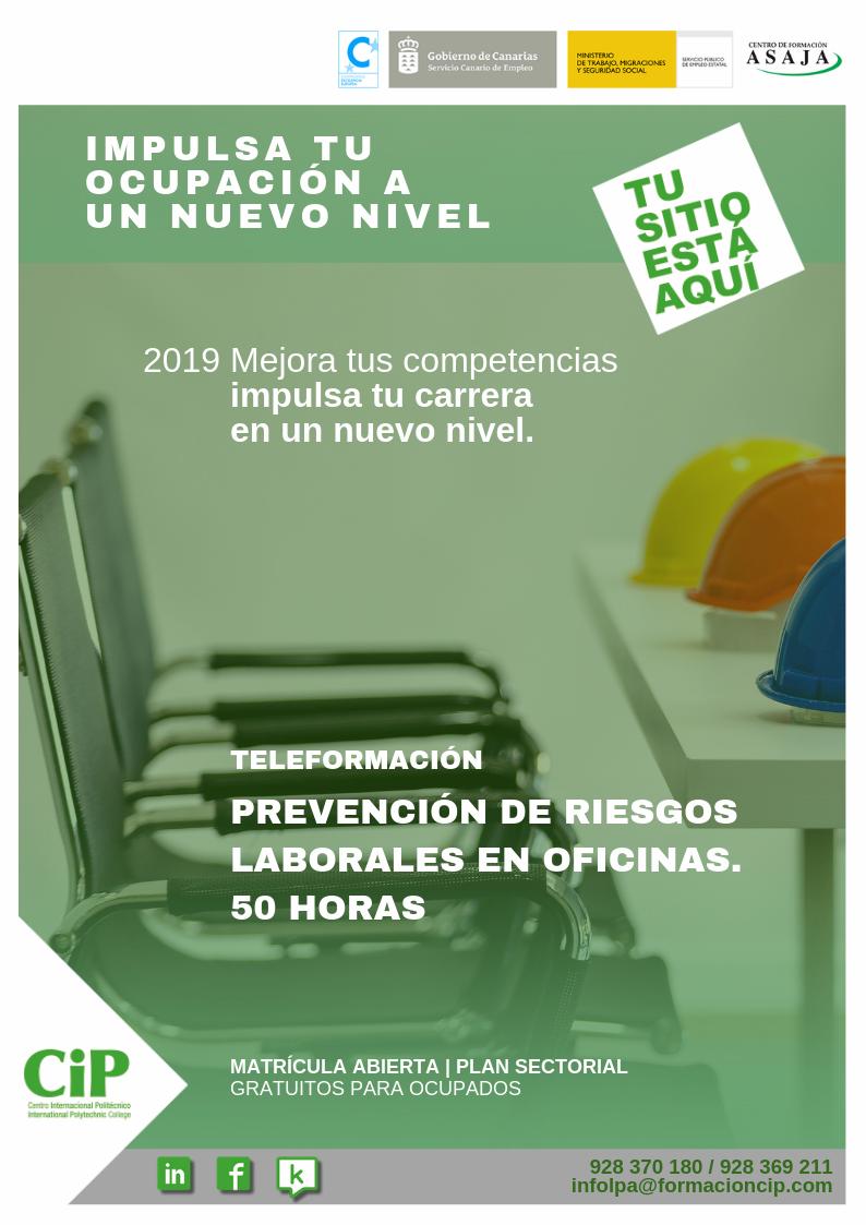 3.- PREVENCIÓN DE RIESGOS LABORALES EN OFICINAS GRATUITO modalidad de teleformación (online ). Curso de 50 horas.