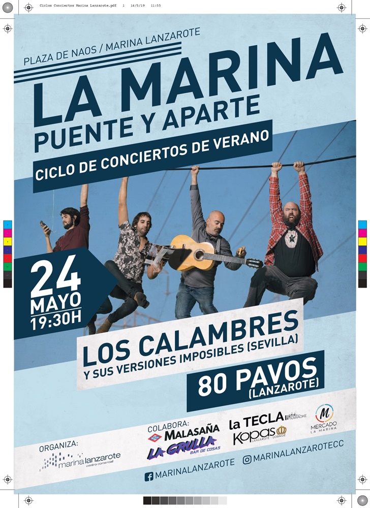El próximo viernes 24 de mayo en la plaza de Naos a partir de las 19.30h "Los Calambres y sus versiones imposibles", desde Sevilla, podrán a bailar al público que allí se congregue. Además, producto local, 80 Pavos, de Lanzarote, también estarán en esta cita del ocio.