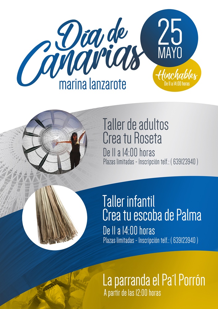 Además, este 25 de mayo celebra el Día de Canarias en Marina Lanzarote con un montón de actividades para chicos y grandes. De 11 a 14.00 horas taller para adultos de Roseta y mientras los pequeños podrán hacer el de Escoba de Palma, previa inscripción en el 639123940. A partir de las 12.00 horas, buena música a cargo de parranda Pal' Porrón.