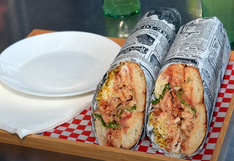 Doblete: doble de carne o pollo, tomate, lechuga, queso, beicon, cebolla caramelizada, kétchup, mahonesa, mostaza + dos salsas a su elección.