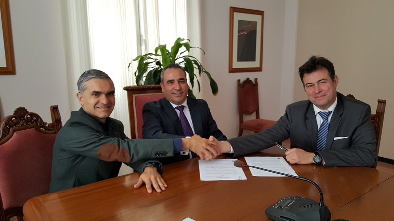 El consejero de Promoción Turística del Cabildo de Lanzarote, Ángel Vázquez, y el consejero delegado de la Sociedad de Promoción Exterior del Lanzarote (SPEL-Turismo Lanzarote), Héctor Fernández, de un lado, y el director general del Centro Deportivo Fariones, Javier Suárez, de otro, suscribieron en la mañana de este viernes el contrato que convierte a este destacado complejo deportivo de Puerto del Carmen en patrocinador del Ente insular de promoción.