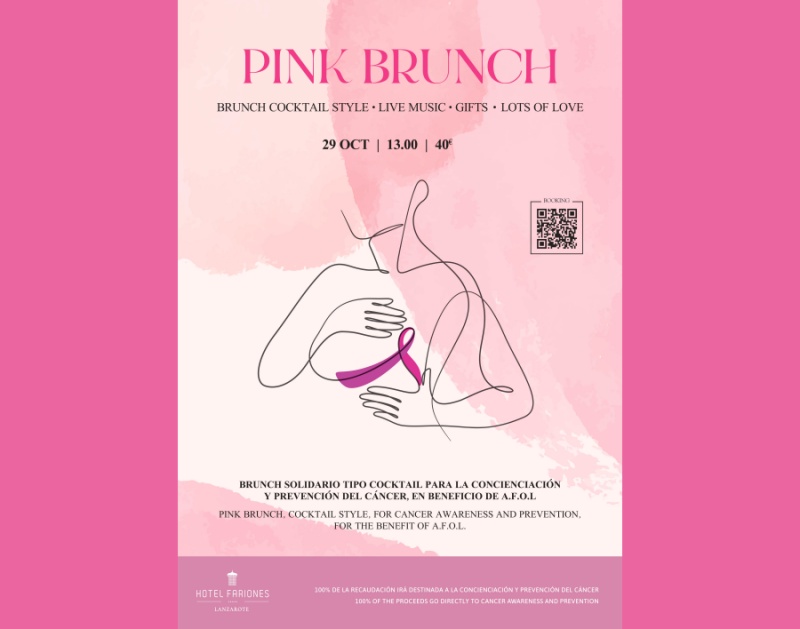 Tendrá lugar el domingo 29 de octubre en el Hotel Fariones y, de este modo, el establecimiento de cinco estrellas recibirá tanto a clientes como locales de la zona para disfrutar de este ‘pink brunch’ en beneficio de la Asociación de Familias Oncohematológicas de Lanzarote (A.F.O.L), ya que el 100% de lo recaudado con la acción irá destinado para labores de investigación y estudio de este organismo.