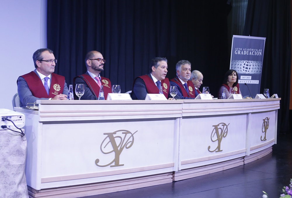 Posteriormente, tomó la palabra el Consejero Delegado de estos Colegios Bernardo Rodríguez, quien hizo un recorrido por la historia para explicar a los presentes el significado de Bachiller y de Graduado, recordando a los graduados que llevan suficientes herramientas tanto en el saber como en los valores humanos para emprender la nueva etapa que se les avecina y afrontar cualquier dificultad que se les presente. Dijo que "esta celebración es un premio a la Aptitud demostrada por los alumnos que se llevan una alta preparación como lo han hecho los más de 280 alumnos que han finalizado sus estudios superiores desde la creación del Colegio. Mucha suerte a todos".