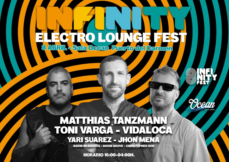El festival Infinity Electro Lounge Fest de música electrónica, que organiza la Sala Ocean de Puerto del Carmen, contará con un cartel de destacados dj nacionales e internacionales como Matthias Tanzmann, Toni Varga, Vida Loca, Yari Suárez, Jhon Mena, Barni Granados y Nomad Grooves b2b Christopher Rod.
