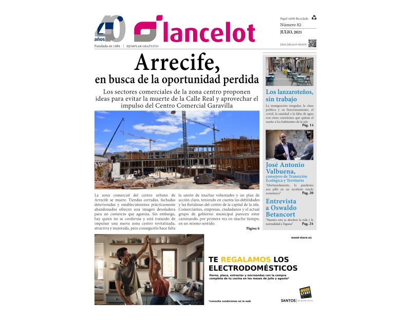 Un nuevo número del periódico Lancelot, el correspondiente al mes de julio, está ya en la calle. En esta edición, analizamos en profundidad la situación del centro de Arrecife. La zona comercial del centro urbano de la capital de la isla se muere. Tiendas cerradas, fachadas deterioradas y establecimientos prácticamente abandonados ofrecen una imagen desoladora para un comercio que agoniza. Sin embargo, hay quien no se conforma y está tratando de impulsar una nueva zona centro revitalizada, atractiva y mejorada, para conseguirlo hace falta la unión de muchas voluntades y un plan de acción claro, teniendo en cuenta las debilidades y las fortalezas del centro de la capital de la isla. Comerciantes, empresas, ciudadanos y el actual grupo de gobierno municipal parecen estar caminando, por primera vez en mucho tiempo, en un mismo sentido.