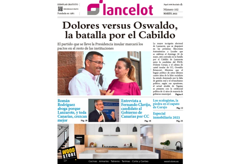 El Lancelot de marzo ya está en la calle y llega cargado de actualidad. El reportaje central de este nuevo número mira hacia las elecciones de mayo y plantea el enfrentamiento por el Cabildo entre los dos principales oponentes: Dolores Corujo y Oswaldo Betancort. En efecto, la mayor incógnita electoral de Lanzarote, que se despejará en las próximas Elecciones Autonómicas y Locales que se celebran el domingo 28 de mayo, está centrada en la batalla entre ambos. Mientras que el bagaje político de estos últimos cuatro años de la líder socialista ha estado dominado por la falta de gestión real y el revanchismo político, según sus opositores, el actual alcalde de Teguise se presenta con la credencial política de 12 años de mayoría de gobierno municipal. Por otra parte, en este último tramo de legislatura, los ecologistas parecen haberse rebelado contra Corujo. Creen que poco o nada ha hecho en estos cuatro años en materia medioambiental, nada en materia territorial y, menos aún, en la implantación de energías alternativas. Además, están cabreados por la apuesta de la presidenta del Cabildo por la carretera que va a circunvalar Playa Honda, en lugar de la alternativa del soterramiento.
