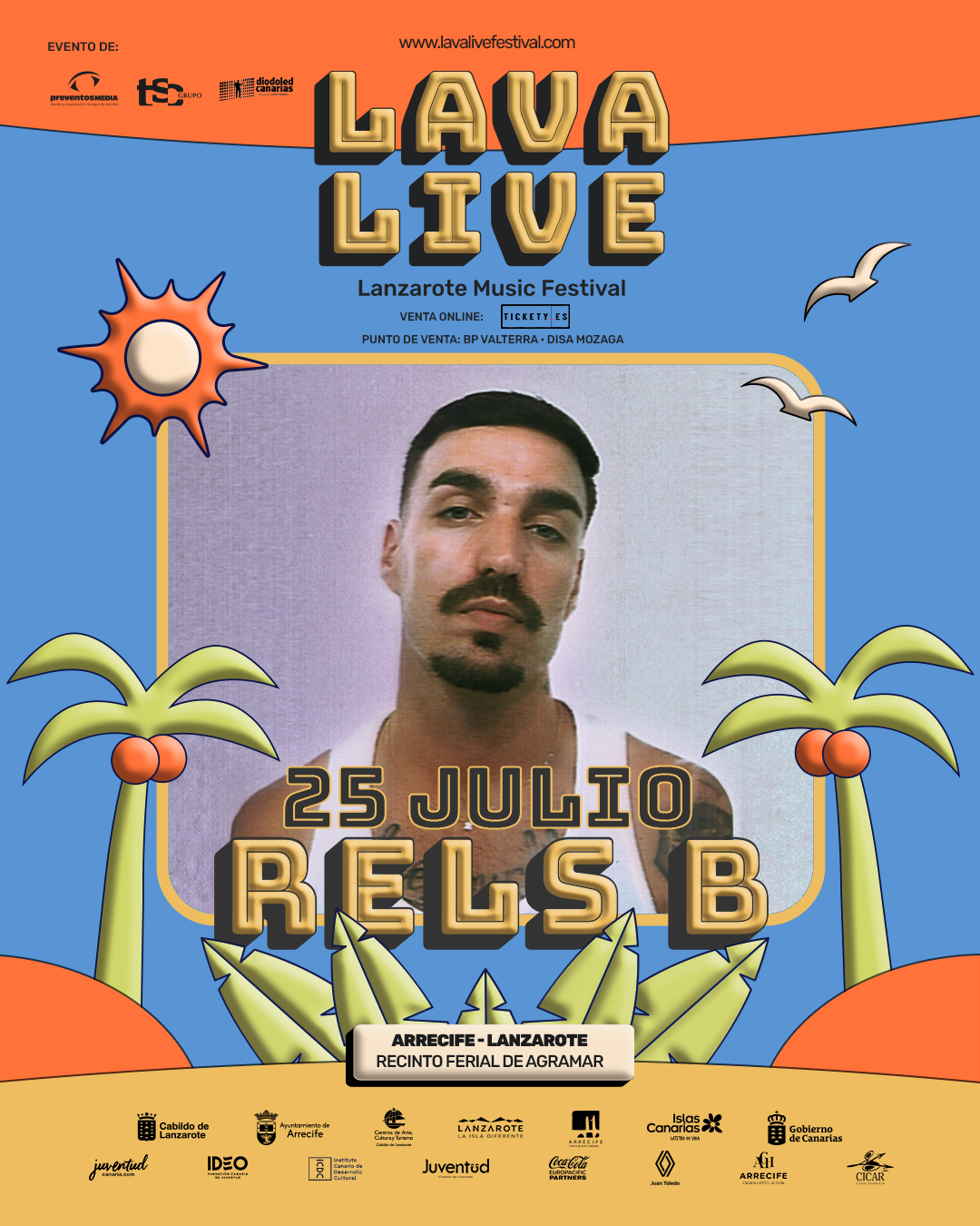 Daniel Heredia Vidal (Palma de Mallorca, 1993), más conocido por su nombre artístico Rels B, ofrecerá en Lanzarote el único concierto en las islas de su gira veraniega, y lo hará en el Lava Live fest. El cantante, compositor y productor musical de rhythm and blues, dancehall, pop latino, hip hop y reguetón actuará en el recinto de Agramar, en Arrecife, el 25 de julio, junto a Steve Aoki, Justin Quiles, Luck Ra y Sumaya VB.