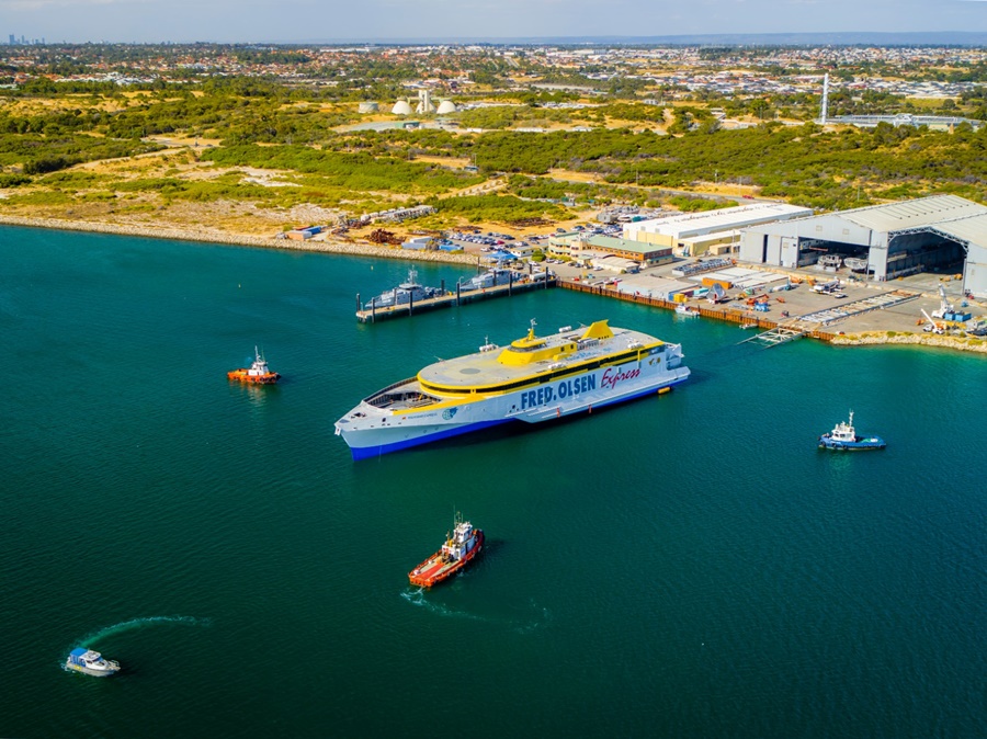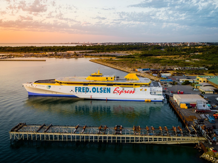 Fred. Olsen Express anuncia que el primero de sus dos nuevos trimaranes ha sido puesto a flote por primera vez a principios de esta semana en el astillero de Austal en Henderson, Australia. La botadura de este nuevo fast ferry, que navegará con el nombre de ‘Bajamar Express’, tuvo lugar el pasado 4 de febrero y supone uno de los grandes hitos en su construcción, pasando ahora a la fase final antes de su próxima entrega.