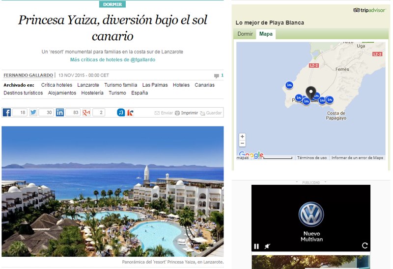 El País valora con nota el servicio y las instalaciones del Hotel Princesa Yaiza