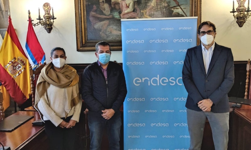 En la imagen. El responsable de Endesa, Saúl Barrios, comunica la donación al alcalde de Santa Cruz de La Palma, Juan José Cabrera, y a la concejala de Turismo, Carla Rodríguez.