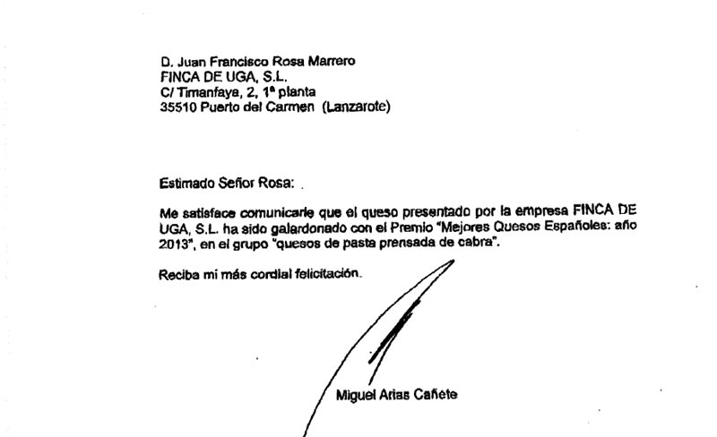 Concretamente, Finca de Uga ha recibido la notificación del propio Ministerio, en un comunicado en el que el ministro, Miguel Ángel Arias Cañete, les informa y les felicita por haber recibido este premio en la categoría de “quesos de pasta prensada de cabra”.