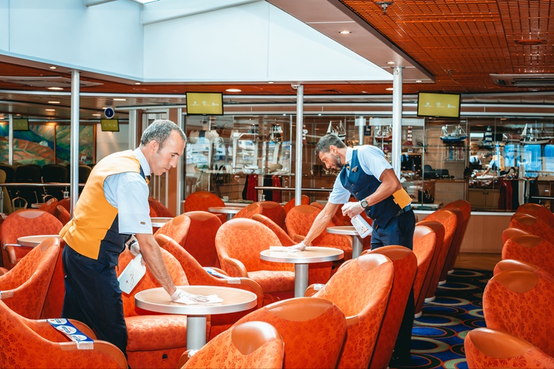 La desinfección con ozono complementa los protocolos que lleva a cabo el personal de Fred. Olsen, que combina la limpieza exhaustiva en cada viaje con productos desinfectantes y la limpieza manual continua en zonas críticas como escaleras, barras, asientos o baños.