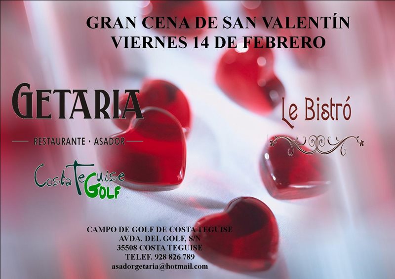 Los restaurantes Getaria y Le Bistro, del campo de golf de Costa Teguise, celebran este viernes el Día de San Valentín con menús muy especiales.