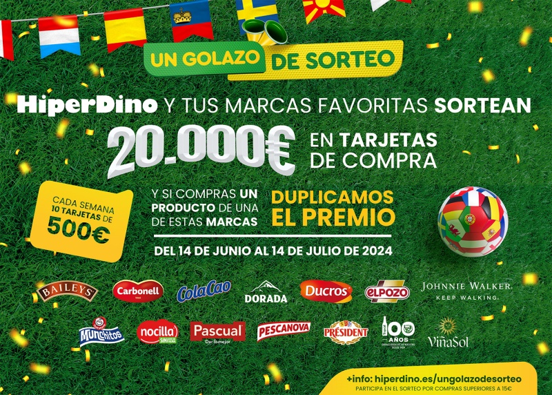 HiperDino celebra el comienzo de la Eurocopa 2024 con la campaña Un golazo de sorteo, que se prolongará desde hoy hasta el 14 de julio, y entregará 20.000 euros en tarjetas de compra entre todos sus clientes.