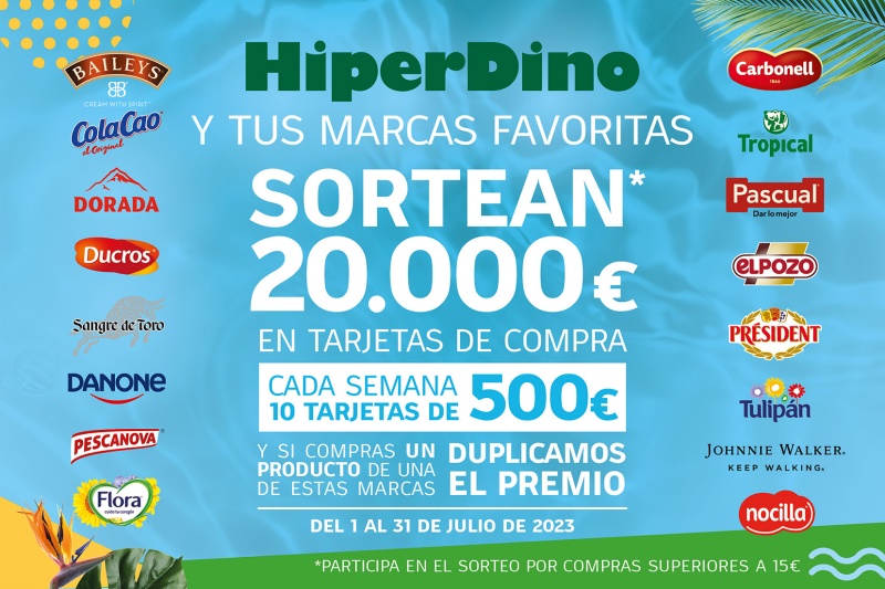 Desde el 1 hasta el 31 de julio, la cadena sorteará diez tarjetas de 500 euros cada semana entre los clientes que compren en cualquiera de sus establecimientos físicos HiperDino y SuperDino, a través de la App HiperDino o del canal online hiperdino.es.