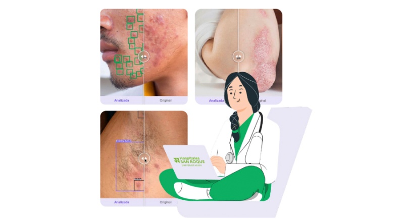 La herramienta digital da un soporte al diagnóstico y ayuda a la medición de la gravedad de las patologías dermatológicas de manera automática, por lo que reduce los tiempos de espera y prioriza los casos urgentes. El paciente remite sus datos e imágenes a la plataforma, el sistema ordena y pre-diagnostica priorizando aquellos casos con una sospecha de pre-malignidad para citación urgente y el especialista se comunica con cada uno de los pacientes para confirmación de diagnóstico, tratamiento y seguimiento.