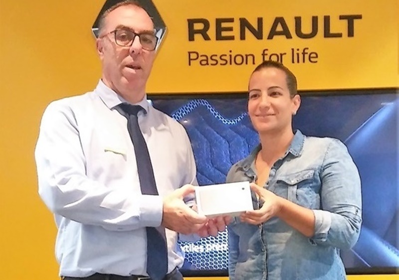 Juan Toledo, concesionario oficial de Renault en Arrecife y Puerto del Rosario, ha hecho entrega del Iphone7 de 256 GB sorteado entre sus clientes del mes de julio, a la ganadora del sorteo, Soleica Desiré Díaz Martín, quien había comprado un Renault Captur durante el mes de Octubre de 2017.