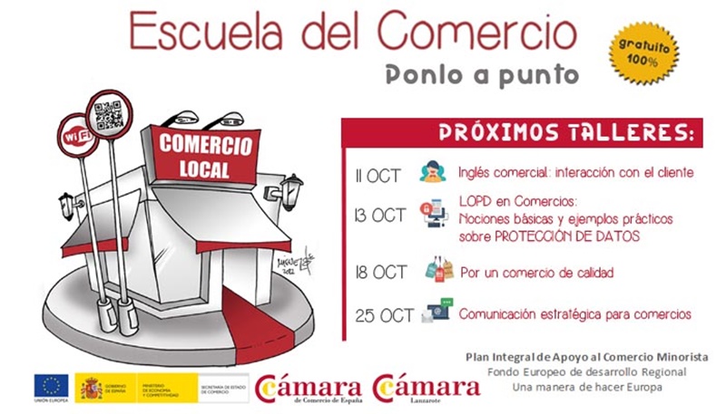 La Cámara de Comercio de Lanzarote ha puesto en marcha una Escuela del Comercio, que comenzó a finales de septiembre y continuará hasta mediados de noviembre. El ciclo, que incluye siete talleres formativos, está orientado a impulsar la adaptación del comercio minorista a las nuevas exigencias del mercado.