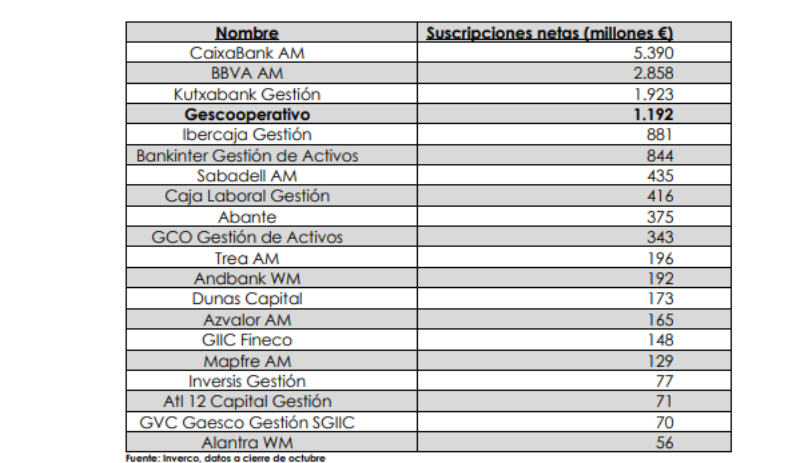 Ostenta, en lo que va de año, la cuarta posición, con 1.192 millones en captaciones netas a fondos
